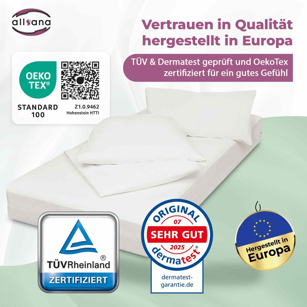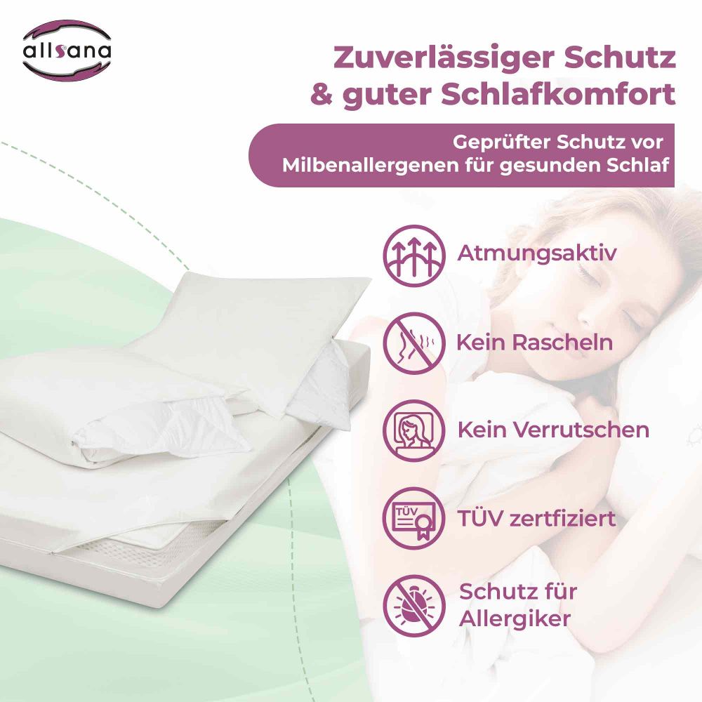 Die allsana sensitive care Schutzbezüge sind unbeschichtet, schadstoffgeprüft und rascheln nicht, dadurch wird der Schlafkomfort nicht unnötig beeinträchtigt.