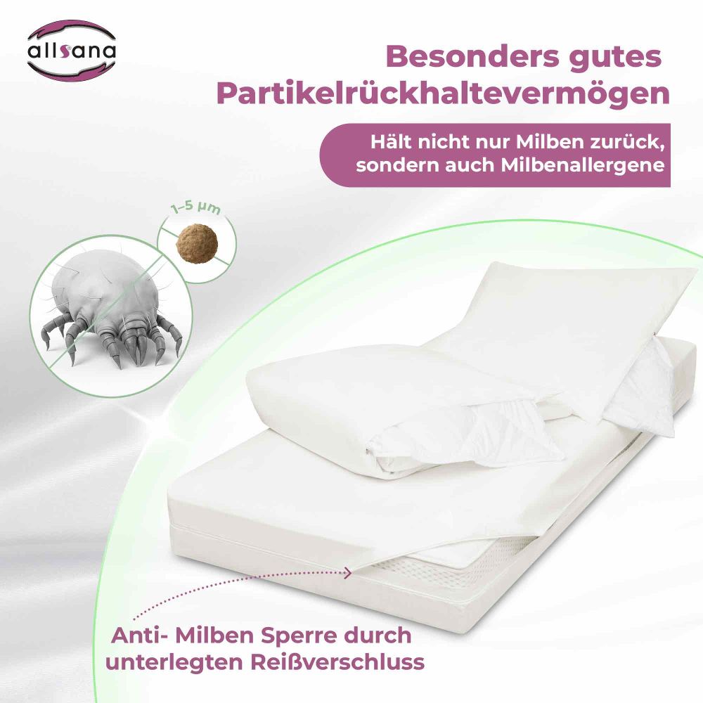Sie entscheiden sich mit dem allsana-sensitive care Milbenschutzbezug für ein qualitativ hochwertiges Produkt. Prüfen Sie vor dem Beziehen des Bettes , ob die auf der Packung angegebenen Größen mit Ihren Bettgrößen übereinstimmen. Da es sich bei unseren Allergikerbezügen um Hygieneprodukte handelt, die Weitestgehend staub- und milbenfrei verpackt sind, sind Bezüge, die bereits aus der Umverpackung genommen wurden, von der Rückgabe ausgeschlossen.