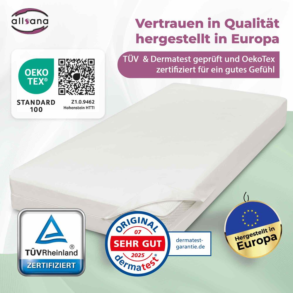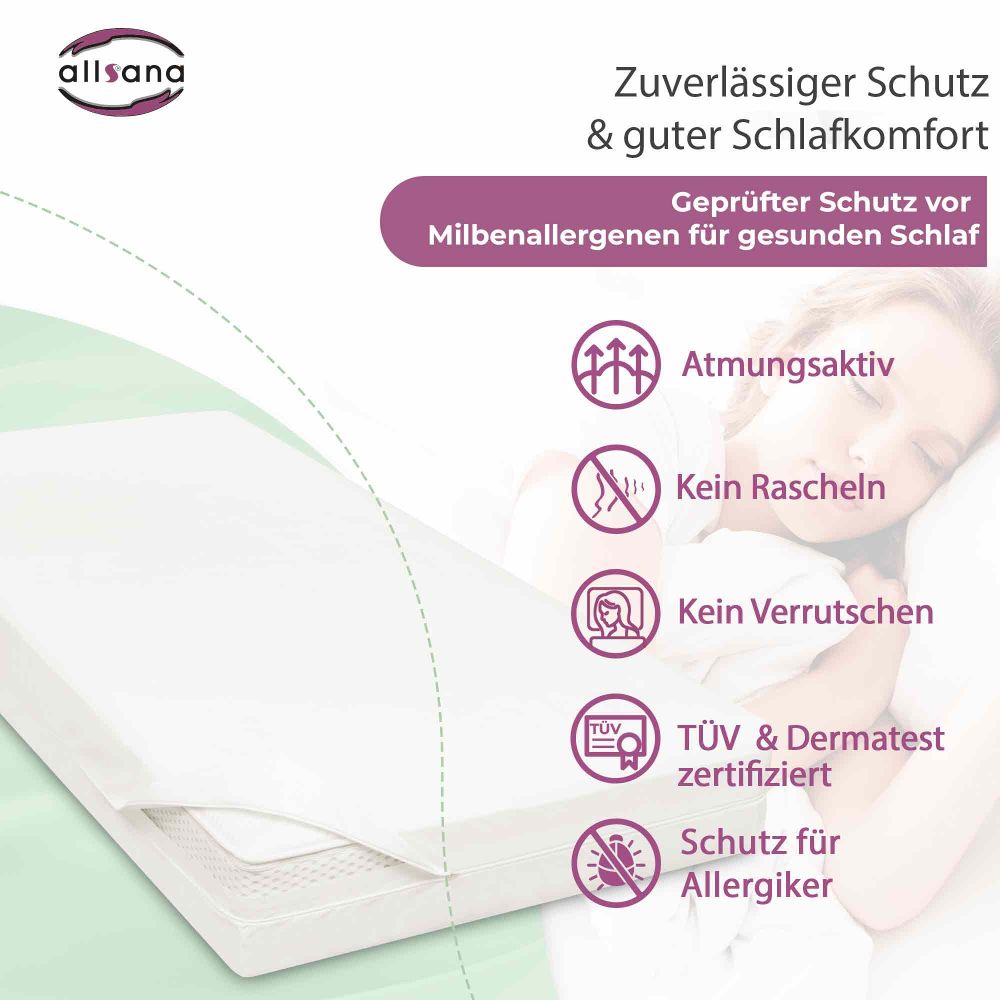 Die allsana sensitive care Schutzbezüge sind unbeschichtet, schadstoffgeprüft und rascheln nicht, dadurch wird der Schlafkomfort nicht unnötig beeinträchtigt.