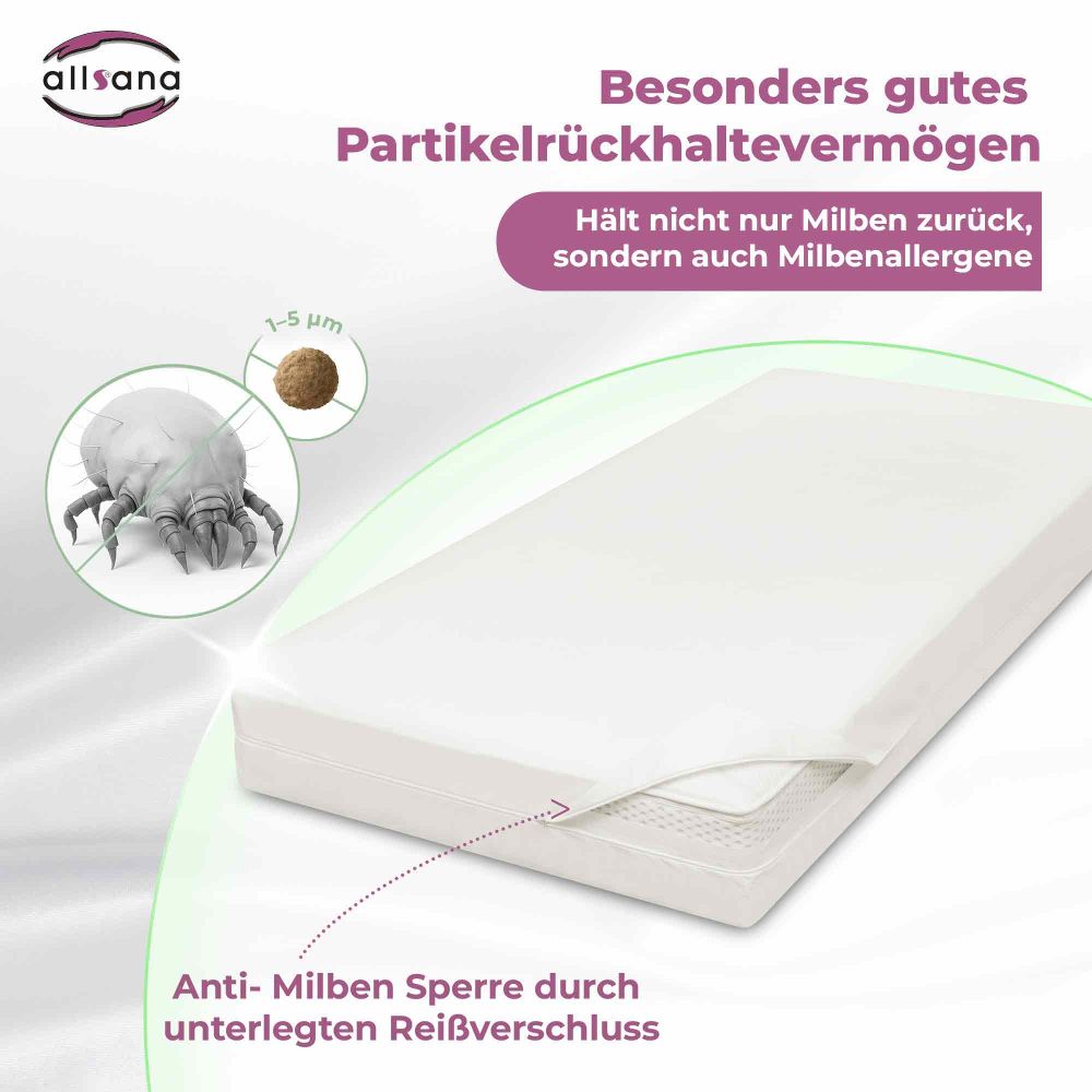 Sie entscheiden sich mit dem allsana-sensitive care Milbenschutzbezug für ein qualitativ hochwertiges Produkt.Prüfen Sie vor dem Beziehen des Bettes , ob die auf der Packung angegebenen Größen mit Ihren Bettgrößen übereinstimmen. Da es sich bei unseren Allergikerbezügen um Hygieneprodukte handelt, die Weitestgehend staub- und milbenfrei verpackt sind, sind Bezüge, die bereits aus der Umverpackung genommen wurden, von der Rückgabe ausgeschlossen.