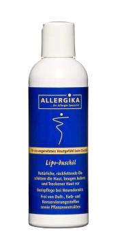 ALLERGIKA Lipo- Duschöl eignet sich für die extrem trockene, fettarme und allergiegefährdete Haut. Das enthaltene Nachtkerzenöl liefert die Lipo- Wirkstoffe Gammalinolen- und Linolsäure, die als essentielle Fettsäuren eine wichtige Rolle beim Aufbau der Hautlipidmembran spielen. Der Wirkstoff Panthenol trägt zur regeneration der Hautzellen bei. Die alkalifreie Zusammensetzung verhindert das Verquellen der Poren. Ideale hypoallergene Hautreinigung für trockene, fettarme und sensible Haut zur Anwendung im Gesicht, an den Händen und am Körper.