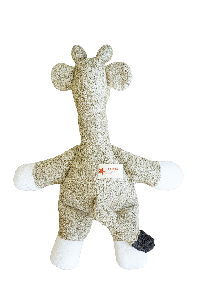 Diese süße Kuschel- Giraffe eignet sich als kleiner Lieblingsfreund auch für allergische und sensible Kinder. Die Giraffe ist aus einem Außenstoff aus 100 % Bio-Baumwollplüsch in liebevoller Handarbeit in einer kleinen Berliner Manufaktur genäht. Die Fußsohlen, Ohren und Pfoten sind mit weißem Nickyplüsch abgesetzt und das Gesicht ist liebevoll gestickt. Die Giraffe hat gestickte Augen und ist auch schon für die Allerkleinsten geeignet und ist ein wunderschönes, liebevolles und sinnvolles Geschenk zur Geburt. Besonders Babys lieben die Giraffe mit dem gut greifbaren Hals.