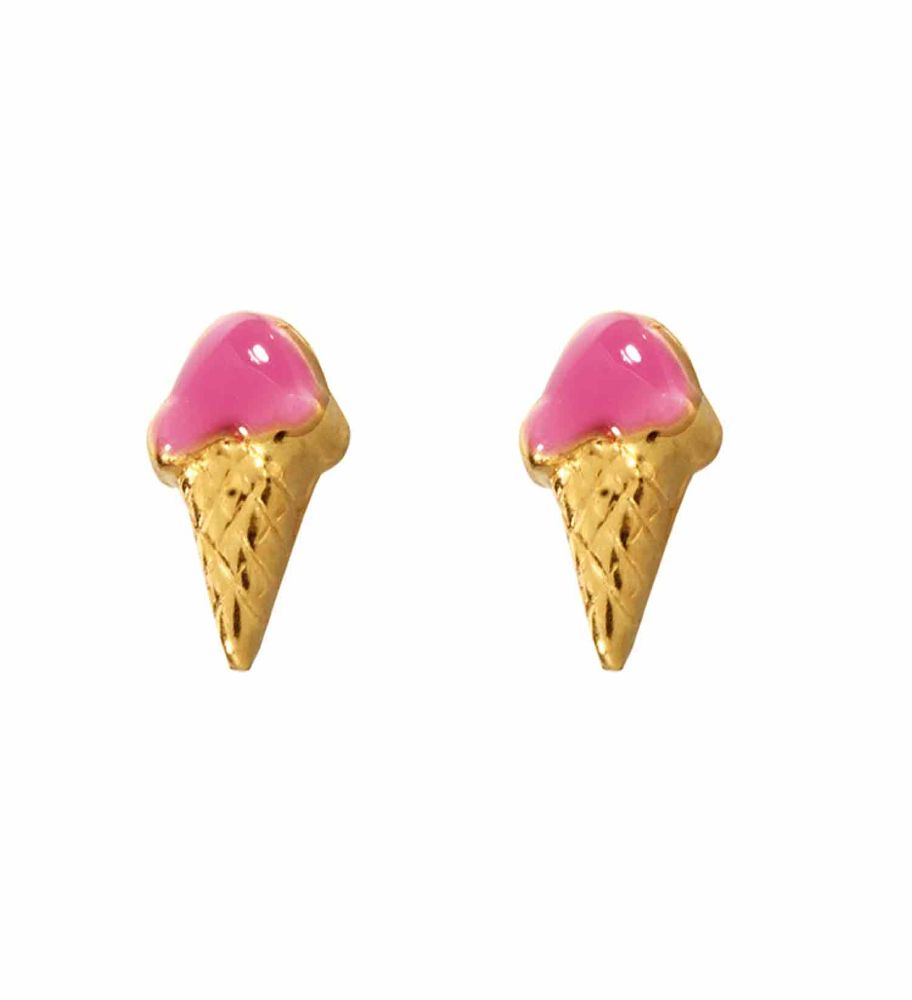 Antiallergische Kinderohrstecker aus vergoldetem Chriurgenstahl mit Eistüte
